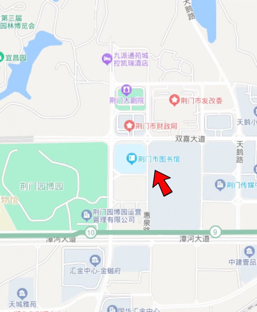 二、乘坐21路(龍泉中學—漳河旅游碼頭)公交車到漳河大道園博園南門公交站點下車,然后向北大約步行670米。